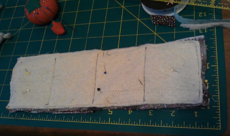 First thing I did was take the strips of batting I had leftover from the quilt and zig-zag stitched them together, side by side to avoid lumps. I just hate to waste material!