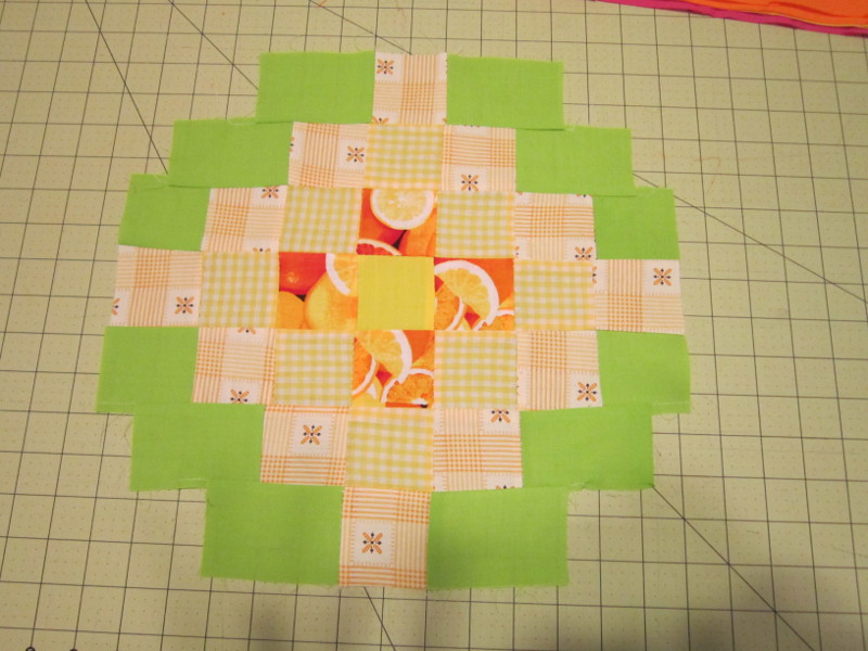 I ran out of green for my corners, and the edges of one block, so we have to make a trip to Joann's on Saturday!